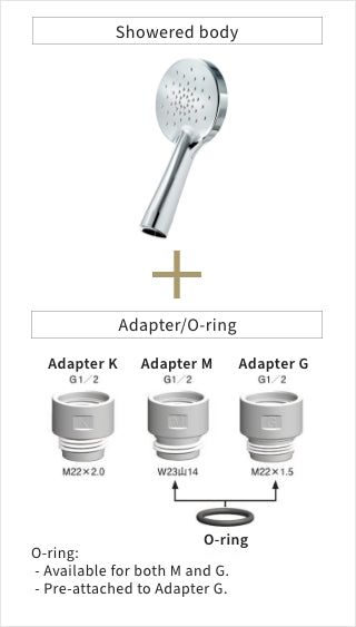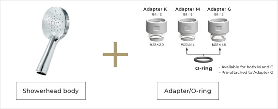 - O-ring (used for M and G) x 1 Adapter G is pre-attached to the showerhead