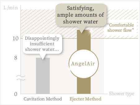 However, AngelAir showerheads, with Ejector System technology, can generate plenty of hot water. Our showerheads are designed to keep hot water flowing comfortably, so you can feel satisfied after your shower.